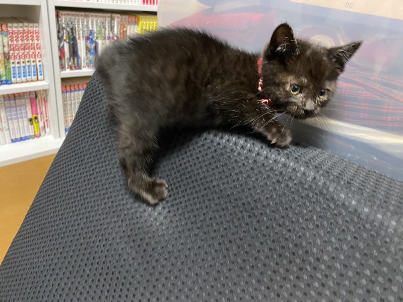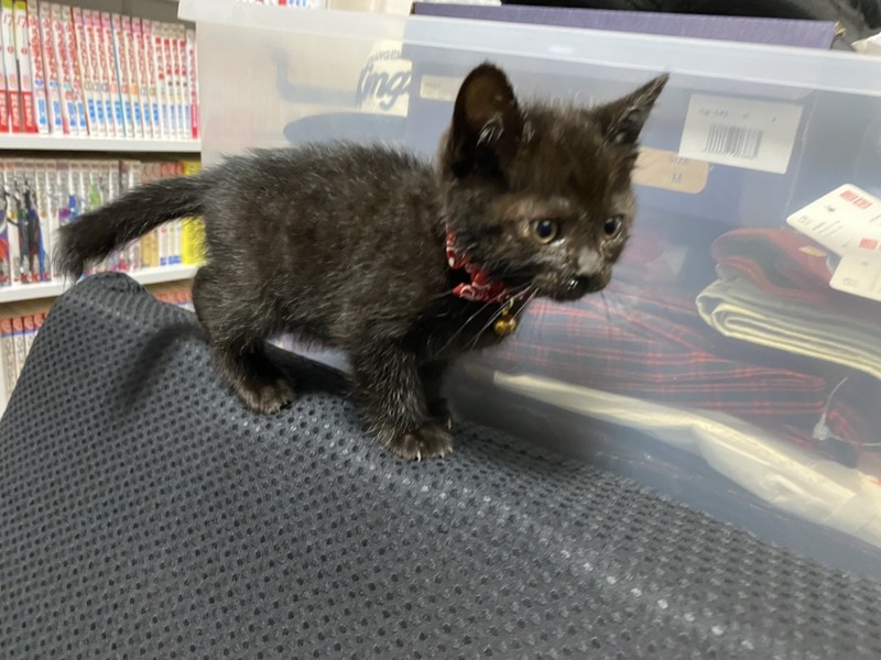 | 特徴(性格など) | 黒猫ですが、よく見ると薄くキジトラのような模様が見えます。人なつこく、遊ぶのが大好きでおてんばな女の子です(*^^*) | ||