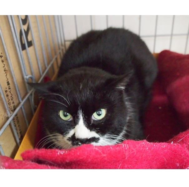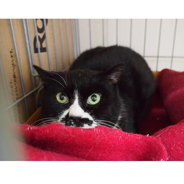 | 特徴(性格など) | 黒白の目力のある女の子です。 今は、人見知りで緊張しています。 お外にいたときはゴロスリさんだったので おうちの中でフリーになって落ち着いたら、きっと馴れてくれると思います。 |