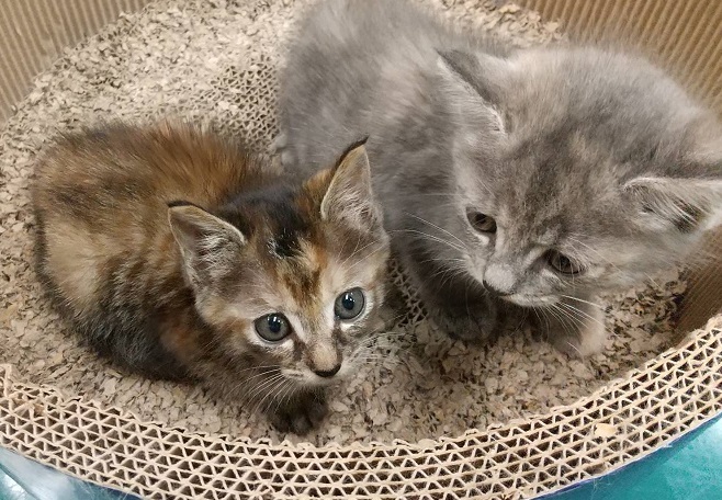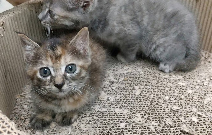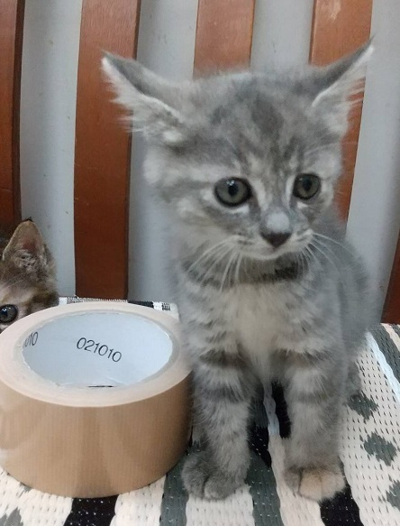 | 特徴(性格など) | 二週間程前に裏庭で草に絡まり泣いている子猫が見つかり保護しました。 初めは怖がって2匹で怒っていましたが、今は落ち着いてご飯もよく食べよく遊ぶようになりました。 1匹はグレー縞で顔がまん丸でやんちゃな女の子、もう1匹はキジ柄のおっとりした女の子です。 生後1ヶ月半くらいの可愛い姉妹猫ちゃんです。 シャンプー・ノミダニ処置・虫下し処置は済んでいます。 親からはぐれた2匹姉妹なので一緒のお家で飼って欲しいと思っています。 まだ小さいのでワクチンはしていません。2ヶ月過ぎてからの接種となります。 |