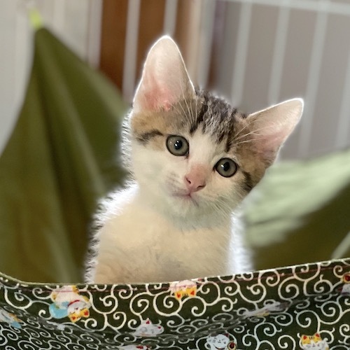 | 特徴(性格など) | ミルクボランティア が育てたので人懐っこく、よく遊びます。 可愛らしい顔つきに、切り揃えた前髪と豆大福柄のバランスが絶妙なおしゃれさんです。 ゆずくんとは兄弟です。 子猫が寂しくなく、家庭内の事故防止対策をしっかりと準備して安全に暮らせる環境を用意できる方とのご縁をお待ちしています。 |