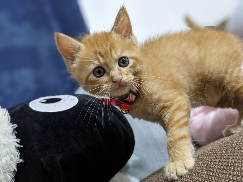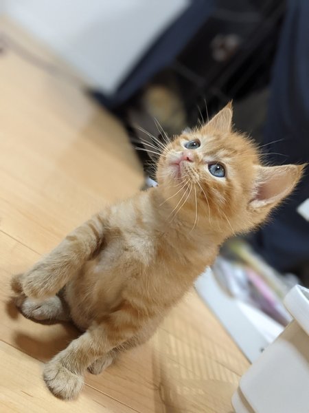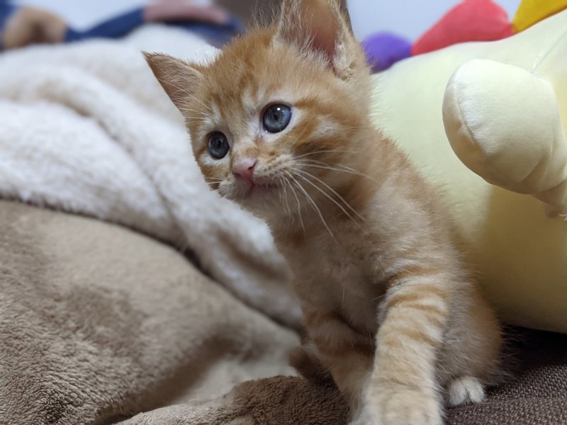 | 特徴(性格など) | 珍しい綺麗な茶トラの女の子です。 とっても甘えん坊で撫でられるのが大好きです。 今のところ、知らない人でも抱っこして欲しくてよちよち歩きで寄って行きます。 遊ぶのも大好きで、毎日沢山ネズミのおもちゃで遊んでいます。 元気すぎて、ちょっとだけイタズラもしちゃいます。 *生後1ヶ月〜1ヶ月半程の女の子 *元気いっぱいです *レトルトパウチのご飯を食べていますが、少しずつドライフードも食べれるようになっています *排泄は、トイレでできています *お腹の虫下済 *ノミダニ駆除済み *血液検査、ウイルス検査まだできていません *心音クリアー *エコー検査異常なし *ワクチン未接種 *避妊手術していません |