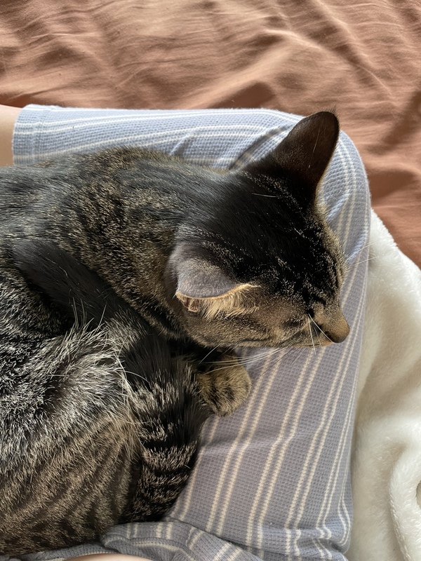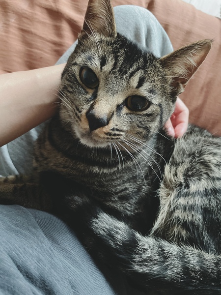 | 特徴(性格など) | キジトラ柄 ♂ ドラ君 人見知りが激しくて、警戒心は 強い方ですが 飼い主に対しては人懐っこくて 寂しがり屋でとても甘えん坊で、 にゃーにゃー 鳴きます。 座ってる時は膝の上にのってきて 寝る時はお布団に入ってくるので とても可愛いです。 わんちゃんみたいにぺろぺろ手を 舐めてきます。 |