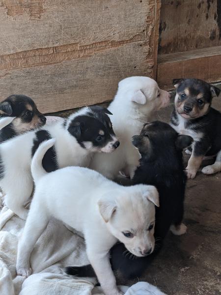 | 特徴(性格など) | 黒色と茶色が混ざったのが2匹と白が2匹 ウシ柄が1匹います。 どの子とても元気です。 |