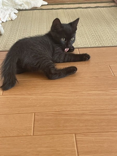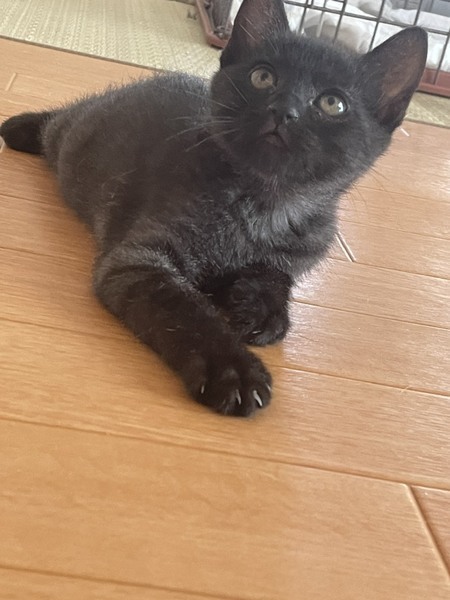 | 特徴(性格など) | ★健康状態★ 糞便検査問題なし ウイルステスト エイズ、白血病 陰性 ★猫の特徴など★ 黒い毛でよく見ると若干縞模様があります。 最近人に慣れてきて、自分から近寄ってきたり膝で寝たりしています。 ドタバタ一人で遊ぶのも他の子猫と仲良く取っ組み合いするのも走るのも寝るのも全力でとっても可愛らしい子です! ご飯大好きで準備していると今か今かとじーっと見つめてきます。笑 |