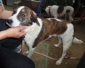 | 特徴(性格など) | ※近日中にトライアルを始める予定です。実際にトライアルが始まりましたら、里親募集はいったん停止させて頂きます。 ●6月の花にちなんで「カスミ」ちゃんと命名されました。 ●カスミちゃんは、体重10㌔台の、スタイルの良い中型犬です。 白茶のブチですが、ブチの部分は茶色というより琉球犬のトラ柄で、とてもおしゃれでステキです。 ●人が大好きで、誰にでも甘えていきます。 滞在先の合宿所では、机の上にひょいと跳び乗って机の上の布団でくつろいでいますが、 人が近づくと、机の上から前足でちょいちょいと人を呼び寄せてなでさせる仕草がとても可愛いですよ。 ●甘えたですが、イケイケ、ガンガンの空気読めないタイプではなく、社会性もあり頭の良い賢いワンちゃんです。 ●トイレはお外派。 お庭に出してもらった時やお散歩でトイレを済ませます。 ●食欲旺盛で、元気です。 ●のみダニ駆除薬・虫下し・フィラリア予防薬は投薬済みです。 ●普段の様子は、一時預かりさんが「犬の合宿所in高槻」のブログに投稿してくださいますから、是非マメにチェックしていてください。→ http://inunogassyukusyo.seesaa.net/ |