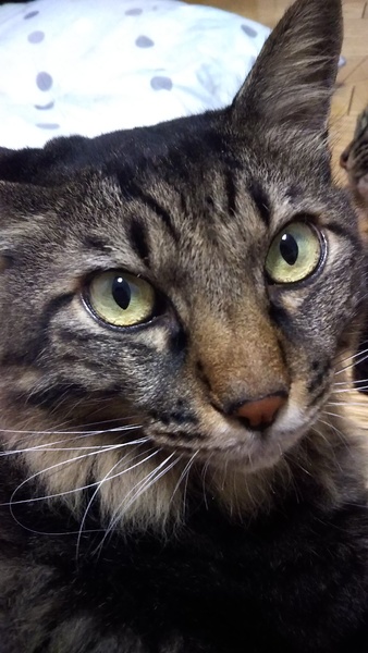 | 特徴(性格など) | 仮名 ハリー 毛色 キジトラ 元気よくワアーと鳴く6キロの大きな長毛の男の子です。ビビりですが時間をかけてもらえれば甘えてきてくれます。 ちゅーるが大好きで音がするだけで寄ってきます。甘えるのがすごく好きな子で撫でてもらうとゴロゴロいいます。 |