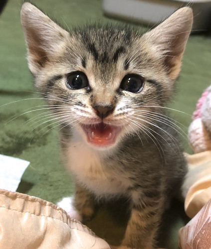 | 里親募集する理由 | 先月、5月8日に、調布市国領△丁目のとある場所で、住民の方よりご相談を受け、TNRの為の捕獲を行いました。子猫は、その際に捕獲したメス猫から生まれた子たちです。通常、TNR目的で不妊去勢手術をする場合、妊娠中であっても獣医さんの判断で堕胎手術をしております。 しかし、今回、動物病院に連れて行くと、しばらくして獣医の先生より連絡があり、メス猫はレントゲンで妊娠後期で今日明日にも生まれそうなことが判明。今の状態で堕胎手術は母体にもリスクがあるとのこと。それでメス猫にはそのまま産んでもらうことにしたのです。 子猫は無事、5月10日に病院内で生まれました。 しかし、母猫は乳飲み子産んでも、胎盤を破ることもへその緒を嚙み切る事もせず、初乳も飲ませず、育児放棄してしまいました。そこで急遽、動物病院の先生の知り合いのミルクボランティア宅にて一時的に預かってもらうことに。1週間後、相談者の依頼を受けていた私共の方で面倒を見ますと協力ミルクボランティア宅に移送。何とか、人間だけの手で無事スクスク育ち、生後1ヶ月となりました。お届けは、生後2ヶ月過ぎてからにしますが、里親になって頂ける方に、今の成長の過程を共有してもらえたらと思い、里親募集を開始することと致しました。 |