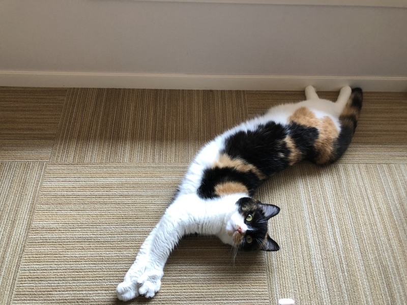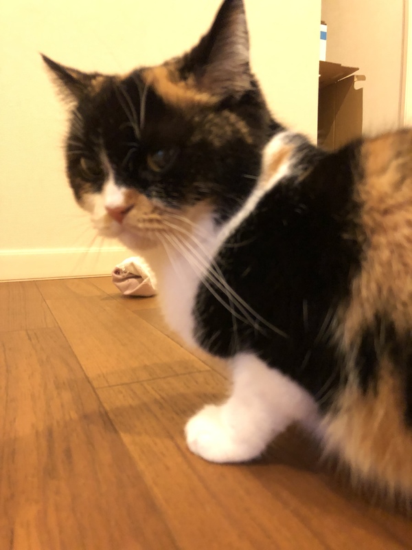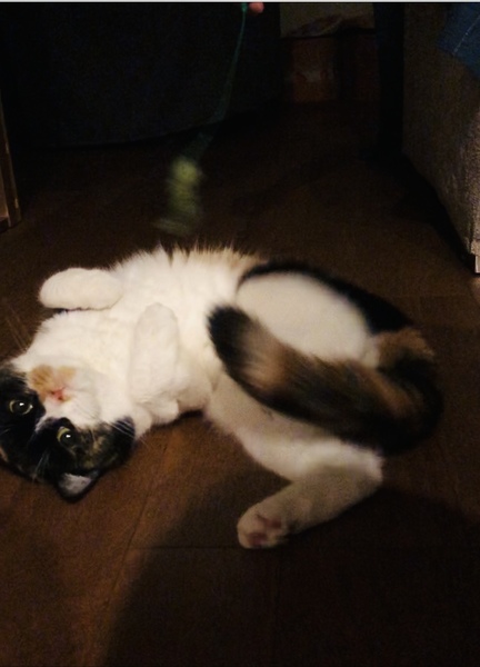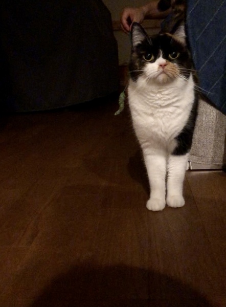 | 特徴(性格など) | スコティッシュ・フォールド立ち耳。 柄はキャリコ(三毛)です。 性格は、大人しく人好き。 食べたり遊んだりよりも、撫でてもらうのが一番な子です。 暴れたり、物を壊したり、トイレの失敗などはほとんどありません。 爪研ぎは、床置きタイプの物か、硬い絨毯や敷物でしかしないので、室内がボロボロになることもありません。 子供は少し苦手ですが、穏やかに撫でてもらえれば大丈夫です。 引っ掻いたり、噛んだり、威嚇したりは、短期間ですが一度も見たことがありません。 |