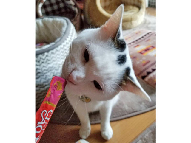 | 特徴(性格など) | ■ 基本情報 ・管理番号 【201016-40】 ・犬種・性別・名前(仮) 白黒茶mix猫 ♂ だんぽ ・年齢・体重 推定5~6歳 体重 6.0kg ・特徴 毛色は白地が多く、おでこにちょんまげ模様があります。大きめな男の子です。 ・性格 おっとりしていて、みんなに優しく甘えん坊な男の子です。 ■ 暮らしについて ・日常過ごす場所 家の中を自由にしており、人の傍にいます。主にリビングで生活しています。 ・食事 カリカリだけでも食べますが、ウエットが大好物です。好き嫌いは少ないです。 ・トイレ 猫トイレで完璧に出来ます。 ・お留守番 イタズラなく、過ごせますが長時間はさせていません。 ・外出 短時間であれば、車は大丈夫と思います。 ・お手入れ お手入れも上手に出来ます。掃除機で吸われても平気です。 ・他犬・猫との関係 猫とも犬とも仲良く出来ますが、ちょっとしつこいです。 大人しい先住さんだと、最初はストレスがあるかもしれません。 ・人との関係 素直で人懐っこい甘えん坊さんです。 ・お願いしたいこと 猫なので、逃走対策には万全を期してください。油断すると外に行こうとします。 ■ 医療管理について(実施日) ・混合ワクチン 〇 3種(2/13) ・不妊手術 〇 (3/3) ・マイクロチップ 〇 (3/3) ・健康チェック 〇 (10/16) ・スケーリング 〇 (11/27) ・便検査 〇 (10/16) ・その他の医療措置 駆虫バイコックス(10/16) 抜歯処置(11/27) ・必要な継続医療 猫エイズ検査陽性です。キャリアなので、大らかにストレスが無いような生活をお願いします。 ・現在の一時預かり先 千葉県松戸市 ・預かりスタッフ ぷーたまま ・預かりブログ むさまるちゃん日記 ・https://ameblo.jp/marukomusashi/ ・引取時の様子 ・http://chibatarianna.jugem.jp/?eid=6698 |