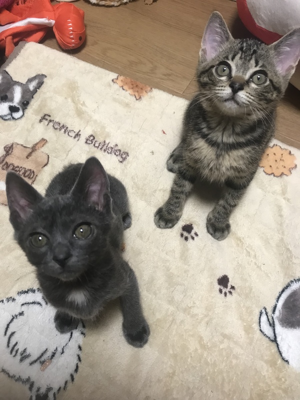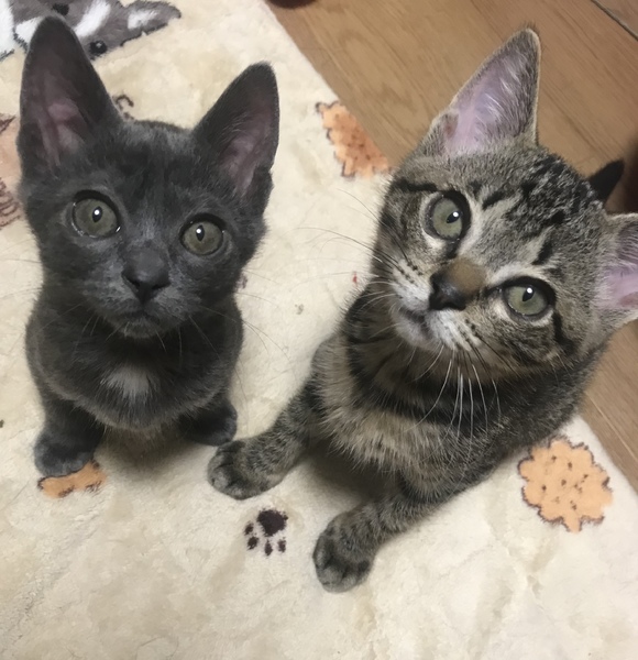 | 特徴(性格など) | 2匹とも野良のお母さんが産み お母さんがいなくなってしまい 保護しました。 茶色マロン 生後2ヶ月ほど グレーコロン 生後1.5ヶ月程 茶色 マロン 女の子 おてんばやんちゃ遊ぶの大好き 甘えんぼさん グレー コロン 女の子 よく寝る子 |
