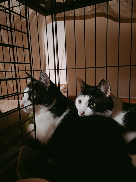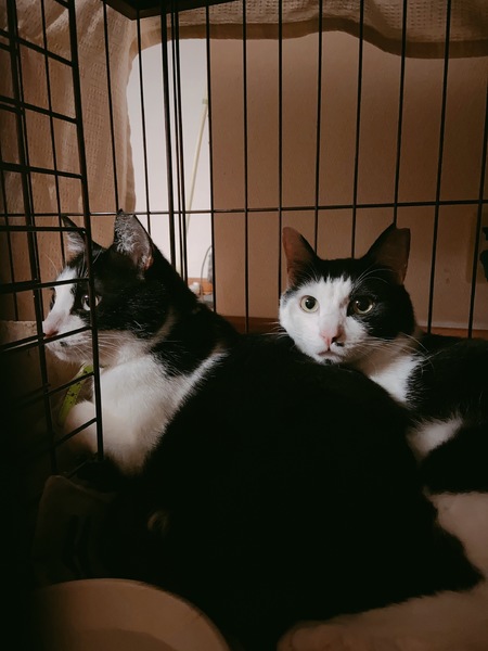| 里親募集する理由 | 家具屋さんが野良猫を保護して仕事場で飼っていましたが、廃棄することになり、引き取り手を探していました。家具屋さんの自宅のマンションでは2匹までしか飼うことが出来ず、この子達は保健所行きになってしまうときき、引き取りました。 生まれてからずっとゲージの中から出たことなく、人に慣れていないため、現在人に慣れてもらうようにトライ中です。 |