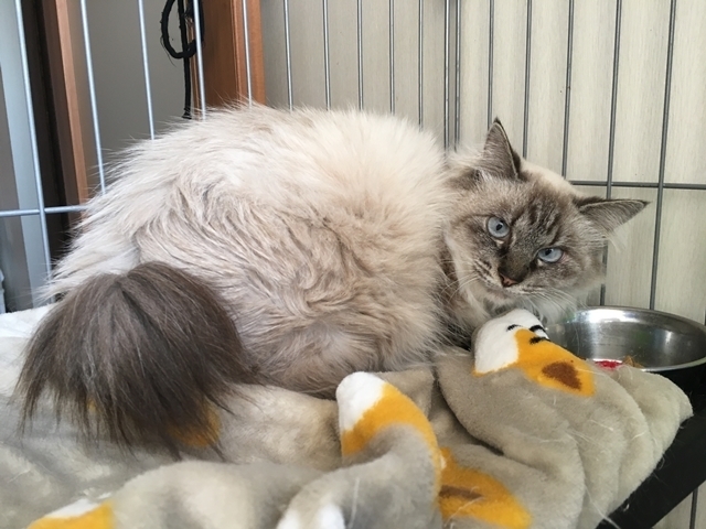 | 特徴(性格など) | 長毛の女の子です。 手足も短く、尻尾もボブテイルです。 少し寄り目。 性格はマッサージ好きで、ブラッシングも喜んでさせてくれます。 普段はコロコロと寝そべっていますが、一度スイッチが入るとオモチャを追いかけて大ハッスルします。 年齢的に最初少し環境見知りすると思います。トライアルを長めにしていただけると助かります。 ・トイレし問題ありません。 ・ノミ/ダニ駆除済み ・検便済み ・エイズ/白血病検査済みで陰性 |