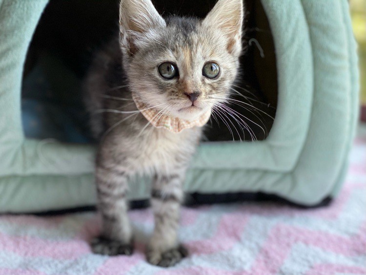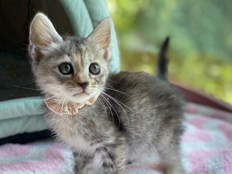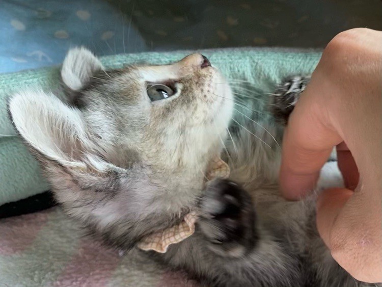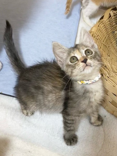 | 特徴(性格など) | 女子力高めなおっとり「ペペロンチーノ」ちゃん❤ 小さな時から人の手で育てられたため、甘え上手なサビさん♪ 現在、ドライフードを24時間の置き餌として栄養補給、水分補給のため一日4回パウチを与えています。 <推定誕生日:5月始め> |