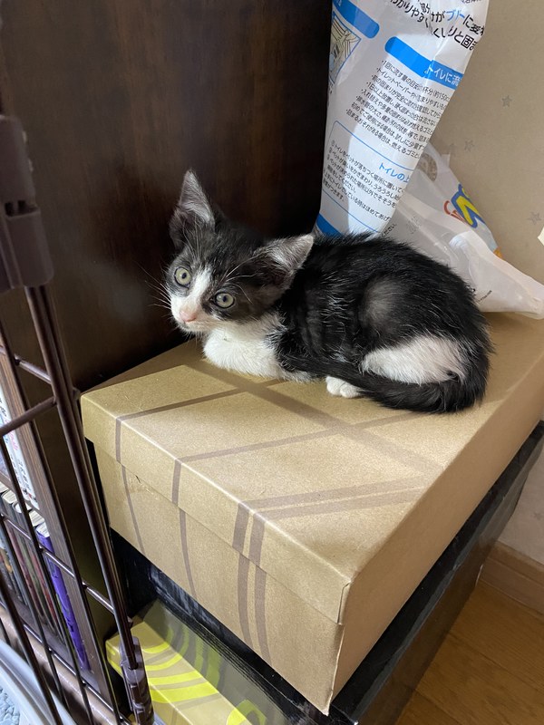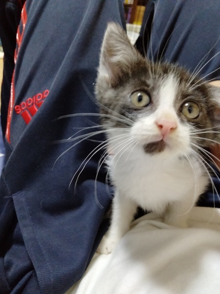 | 里親募集する理由 | 車のエンジンルームに挟まっており、ディーラーに頼んで救出してもらいましたが、そのまま見捨てられずに募集しました!(そのまま動物病院に連れて行き健康状態を確認しましたが、怪我などもしておらず元気です) | ||