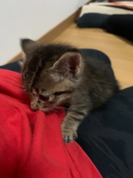 | 特徴(性格など) | キジトラ♀ 食事とトイレを自分で出来るようになりましたし、膝の上に乗って甘えてきたり、後ろを付いて来ます |