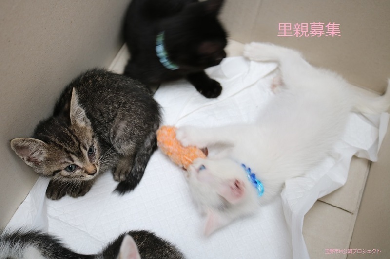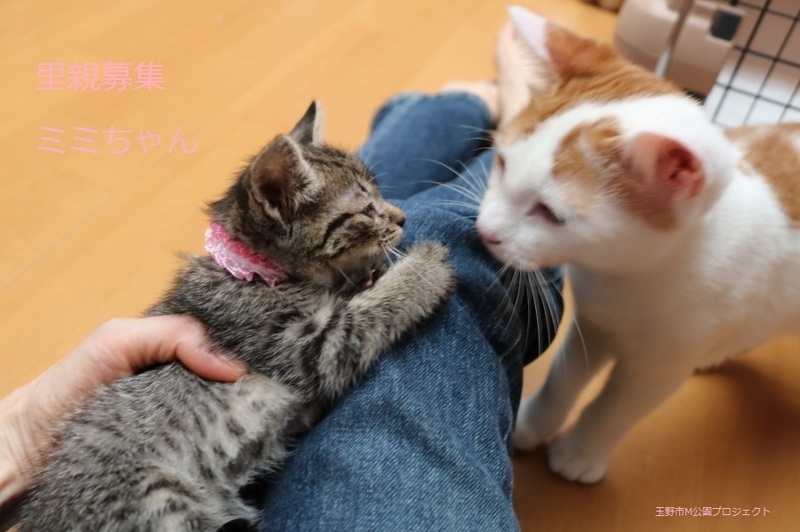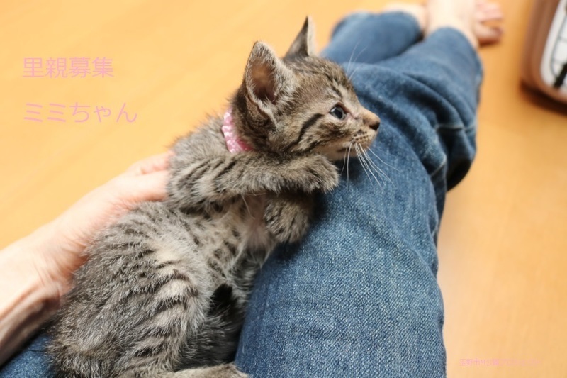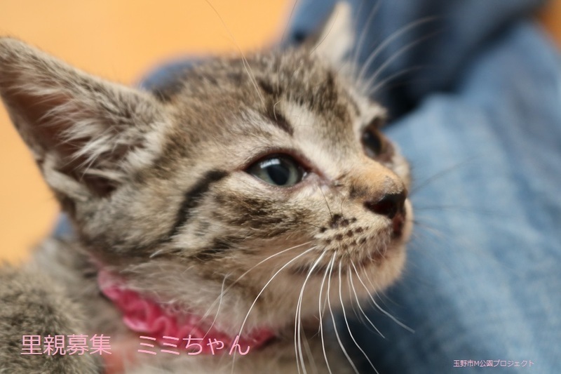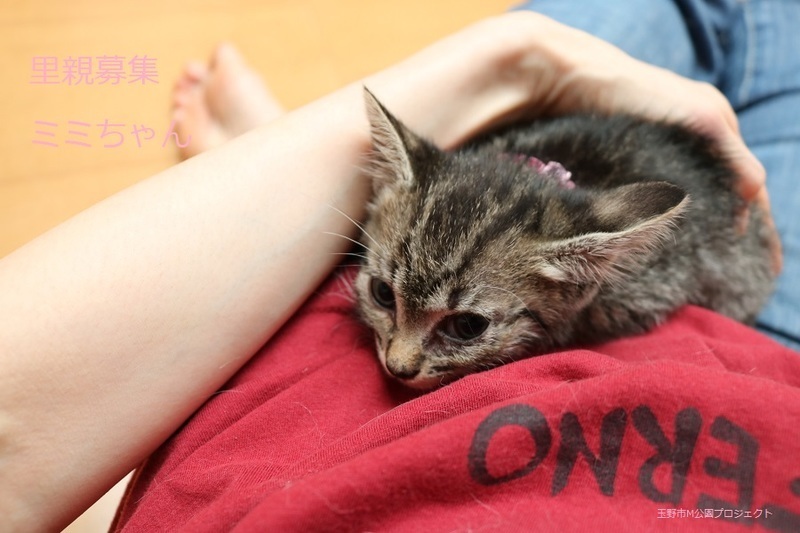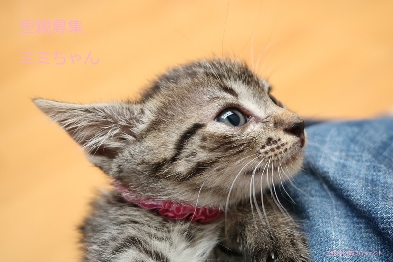 | 特徴(性格など) | キジトラ仔猫、女の子、仮名:ミミちゃん 推定生後一か月半くらい(獣医師推定)、体重:370g(6/14現在) 健康診断済み、フロントラインスプレー済み トイレしつけ済み、 血液検査、ワクチン接種は、体重が1kgになり次第実施します。 5匹兄妹の中では、小柄で可愛らしいです。 はじめは人見知りしますが、慣れたら活発に遊びます。 6/30、ウイルス検査-エイズ・白血病-共に陰性(兄弟代表でコスモくんで実施)。 6/30、初回三種混合ワクチン接種。 7/7、ブロードライン済。 |