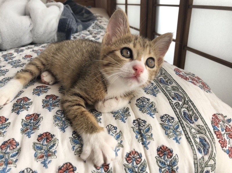 | 特徴(性格など) | 色柄【茶色がかったキジ白】 ●綺麗な模様の猫ちゃんでクリクリお目々がとっても愛らしいです。 ●人間に慣れていて、社会性もあり先住猫達とも仲良くできています。 ●お利口さんで初めて猫ちゃんを迎える方にピッタリだと思います。 ●一緒に寝るのが大好きな甘えん坊です♡ ●撫でられるの大好き♡ ●もちろん遊ぶのも大好きで一生懸命おもちゃで遊びます♡ 1人遊びも上手にできます^_^ |