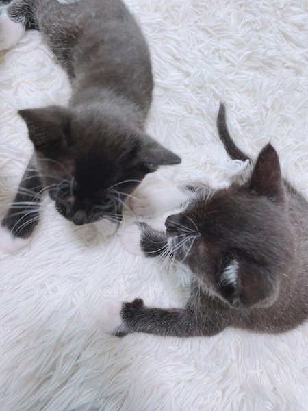 | 特徴(性格など) | 靴下のような白い柄のある黒白猫です。性格はマイペースで猫らしく知的で(トイレの場所やお水の飲み方もすぐに覚えてくれました)穏やかで、抱っこされてもじっとしている優しい子です。小さな子どもと一緒に育ったので、小さなお子様のいるご家庭でも大丈夫だと思います。寝ていると寄り添ってくれます。 | ||