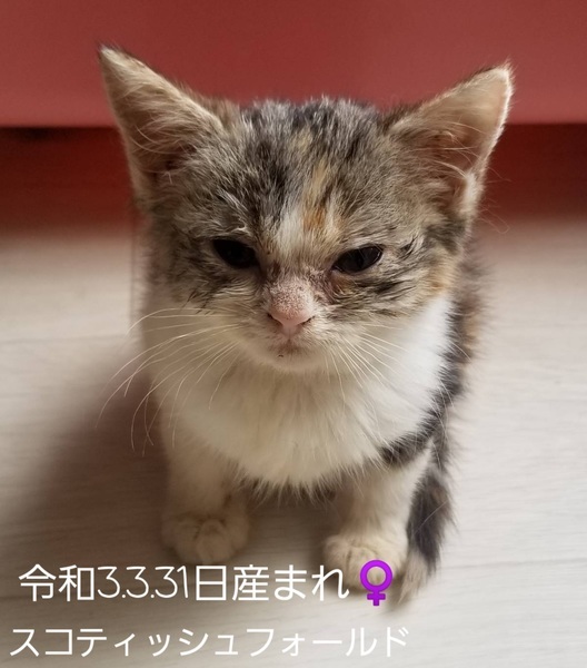 | 特徴(性格など) | 生まれて2ヶ月ちょっとの可愛い子猫です。 お色はシルバーグレー×ホワイト。 おっとりとした性格ですが、元気いっぱいの女の子です。 人も犬も大好きで、人の後を追いかけて来るくらい人懐こい可愛い女の子です。 良く食べて良く寝て元気に過ごしています。 |