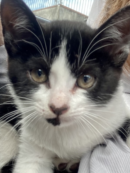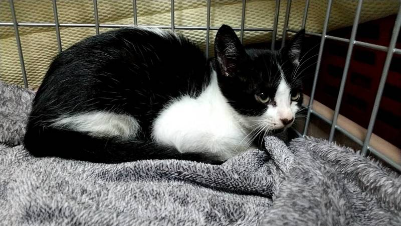| 特徴(性格など) | 綺麗なハチワレの男の子です。 保護当初は人に慣れておらずじっとしていましたが、今は徐々に慣れて来て、少しずつ近寄って来てくれるようになりました。 触るのも抱っこも嫌がらないです。 控えめな性格の子です。 子猫ですので、お世話をしていくうちにどんどん慣れて来てくれると思います。 健康状態 ・ウェットのフードを好んで食べるようで、カリカリのご飯練習中です。 ・病院へ健康診断へ連れて行き、レボリューション(ノミダニ回虫駆除)と検便をしてもらっています。 ・体重は1キロです。 ・目ヤニが出ていたので、目薬で治療中です。 ・猫エイズ、白血病の検査はまだ子猫の為正確な結果が出ないとの事で検査していません。 |