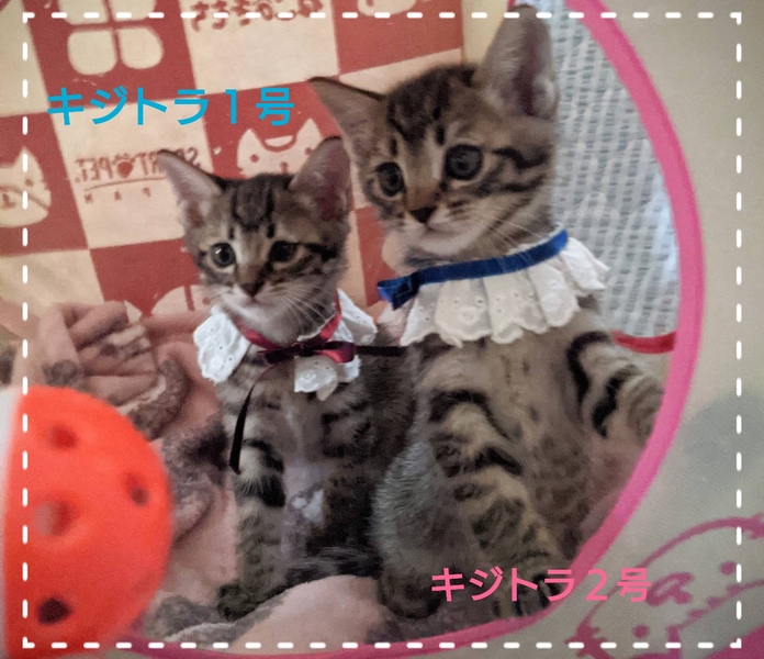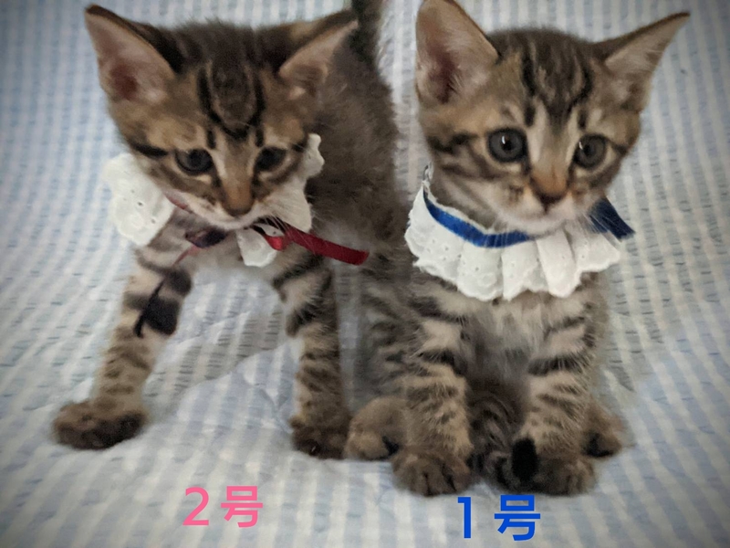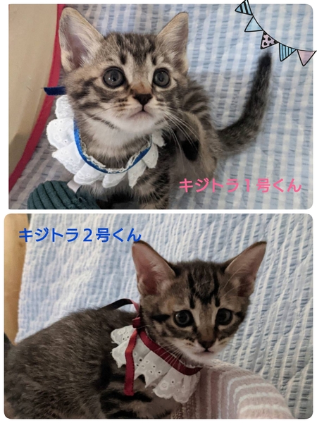 | 特徴(性格など) | 健康状態 ☆提示させて頂きました 譲渡費用は、兄弟二匹一緒での譲渡を希望しておりますので 二匹分の譲渡費用になっております。 (三種混合ワクチン費用 4,000円✕2 ウイルス血液検査費用 4,400✕2 その他治療費として 糞便検査費用 駆虫薬費用の一部を計上させて頂きました。) ◇5月2日生まれ 現在生後1ヶ月半 体重700グラムです。 お母さん猫の母乳をいっぱい飲んで 離乳食をモリモリ食べ始めて スクスク元気いっぱい育っています! ◇6月15日 ウイルス血液検査実施 猫エイズ・白血病 いずれも陰性でした。 ◇三種混合ワクチンは、 生後2ヶ月を迎える 7月上旬に一回目の接種予定(譲渡費用に含まれております。 ワクチン接種前にお引渡しの場合 ワクチン接種費用は頂戴いたしません。) ・仔猫期は、一回目の接種から1ヶ月後に2回目の接種をします。) ※各種証明書、医療費明細はお見合い時に必ず開示いたします。 正式譲渡時に 各種証明書はお渡しいたします。 ◇ 外部寄生虫 消化管内部寄生虫 6月15日 駆虫薬投与済み。 ・譲渡前に 糞便検査実施予定。 糞便検査の結果で 必要があれば 2回目の駆虫薬を投与いたします。 ◇おトイレしつけ済み。(木製チップの猫砂を使用しています。形状は鉱物系の猫砂そっくりです。) ♥️猫ちゃんの特徴について キジトラ1号くん♥ 愛嬌のある お顔立ちをしている 正統派 キジトラくんです! 性格は、物怖じせず天真爛漫? 好奇心旺盛 初めての人にも隠れず緊張せずマイペースくん 遊ぶの大好き 兄弟とくっついて寝るの大好き キジトラ2号くん♥ なぜか いつも困ったちゃん顔の正統派 キジトラ2号くん! 性格は、1号くんよりも ビビリくんで 弱虫な一面もあり のんびりしています。 ビックリしたり 恐かったりすると 「お母さーん ボクめっちゃ恐かったんだよー」と、お母さん猫に駆け寄り ピトッてくっついてる甘えん坊さん。 キジトラ1号くんとの 性格の対比も 微笑ましく可愛いです。 二匹共に、「THE キジトラ✨」という 正統派なキジトラ模様で キレイな まっすぐシッポです。 キジトラは、賢く穏やかな性格だと言われています。 |
