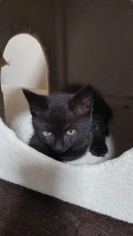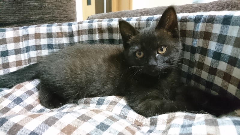 | 特徴(性格など) | 黒猫のメス、生後2ヶ月だと思います。 今月、親猫(野良)から逸れて数日たっていたので保護しました。 とても人懐っこく甘えてきます。 遊ぶのが大好きで、活発で、撫でられるとゴロゴロして喜びます。 また、うちの先住猫達にも懐いているので里親となった方の家に先住猫がいても問題なく生活できると思います。 のみ、ダニ、駆除済みです。 動物病院にて、健康診断済。 血液検査の結果、猫エイズ陽性でした。 現在、発症はしておりません。人に感染することはありません。 エイズウイルスキャリアの子でも、ストレスのない生活を送ることにより発症することなく、天寿を全うする子が多いと言われています。 現在はドライフードをお湯でふやかして柔らかくして与えています。 |