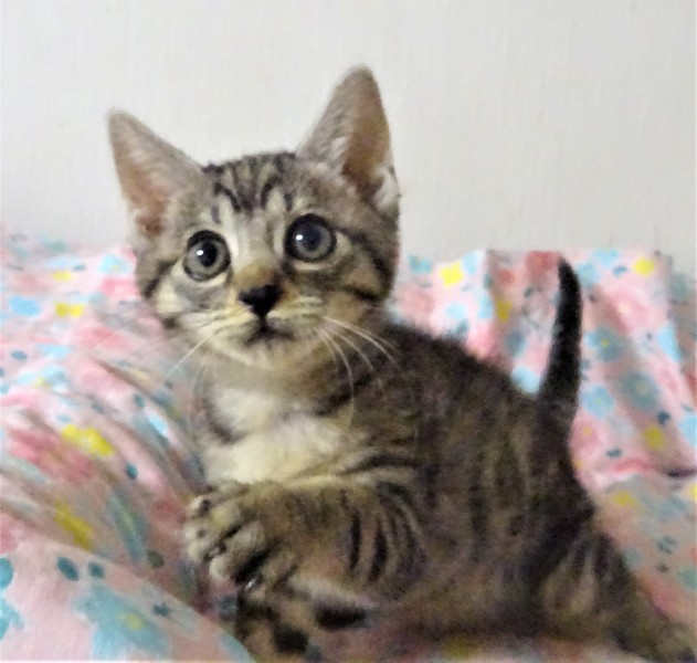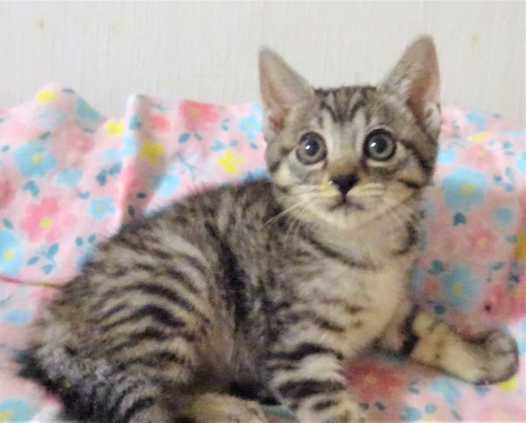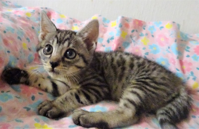 | 特徴(性格など) | 仮名: 雪奈ちゃん(メス) 毛色: サバトラ、尻尾長い 性格: 人馴れしていますので、威嚇なく抱っこ出来ます。病院でもご機嫌で、喉を鳴らすので心音が聞けないようです。 他の猫ともうまく付き合えるようです。 かけっこやプロレスをして遊んでいます。 姉妹の春奈ちゃん、クコちゃんのうちの誰かと一緒のお家に行けると良いです。 暫くは見守りが必要なので、留守番時間の短いお家でお願いします。 ノミ取り済 検便済 駆虫済 3種混合ワクチン済 猫エイズ・白血病ウィルス検査はともに陰性 |