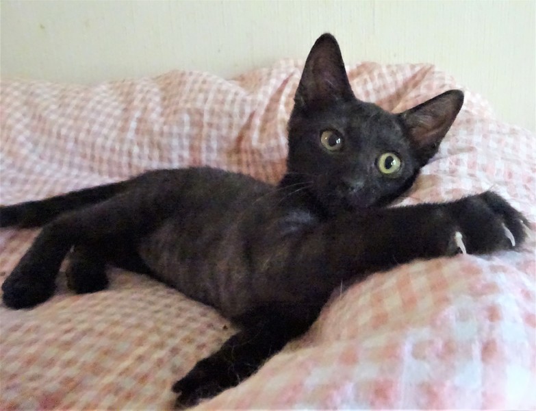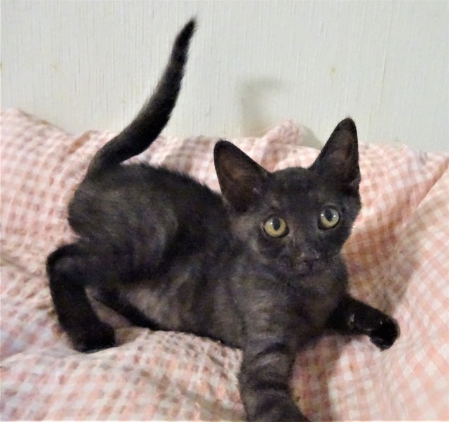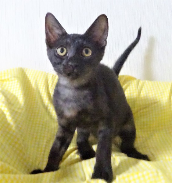 | 特徴(性格など) | 仮名: クコちゃん(メス) 毛色: アッシュ系で、一見黒猫に見えますが、薄い縞模様がありますので、大きくなったらもっとはっきりすると思います。 性格: 人懐っこいので威嚇なく抱っこ出来ます。抱っこすると甘えます。 姉妹の中でも小さいので末っ子と思います。 小さいですが、にゃんプロしたりかけっこしたり、他の猫とも遊べます。人懐っこく、猫飼い初心者の方でも大丈夫と思いますし、先住猫ちゃんがいるお家でも大丈夫と思います。 ノミ取り済 検便済 駆虫済 3種混合ワクチン済 避妊手術済 猫エイズ・白血病ウィルス検査はともに陰性 |