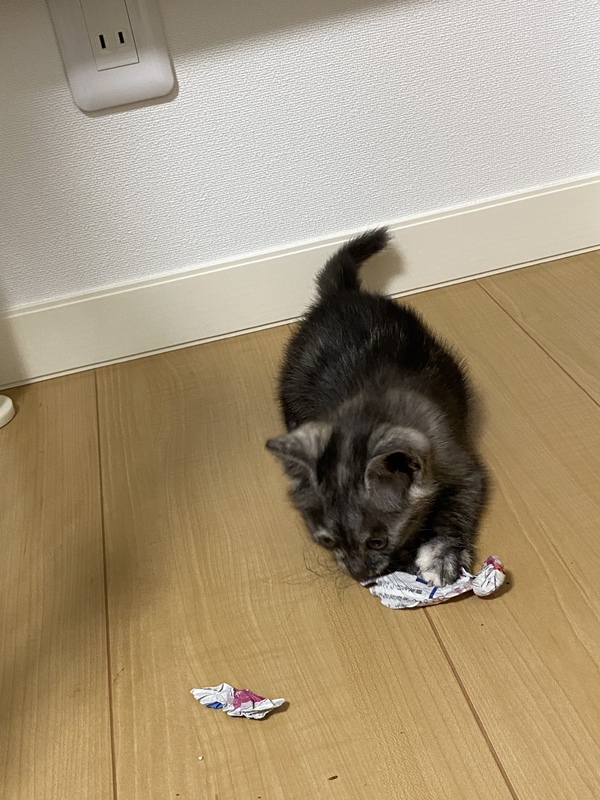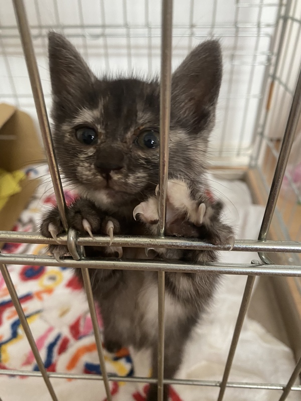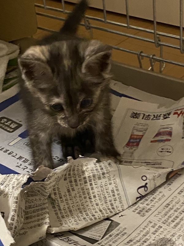 | 特徴(性格など) | 人懐っこく好奇心旺盛な子です。 拾った子ですが、目が合ったあと鳴き声をあげながら15分以上ついてこられたため保護しました。 今のところ人見知り等なく、誰にでも甘えます。顎の下を撫でてあげるとゴロゴロと喉を鳴らして喜びます。 白地に黒の縞模様ですが黒白の割合が9:1くらいです。お腹は白いです。 |