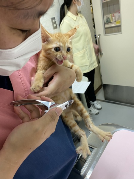 | 特徴(性格など) | 茶トラが可愛いやんちゃ盛りの男の子です。名前はポコちゃんです。犬が3匹に囲まれて育ったので、めちゃくちゃ走り回って元気です。犬と格闘します。なかなか泣きません。かぎしっぽがトレードマークです。 | ||