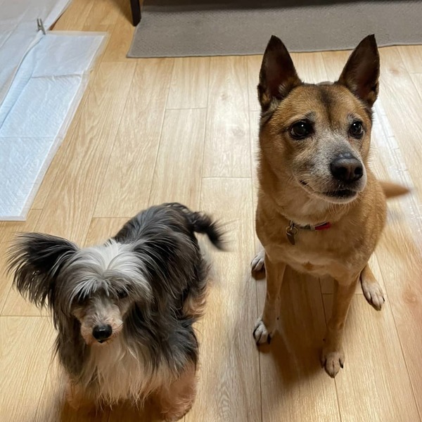 | 特徴(性格など) | とても明るく活発、甘えん坊です。 人にも犬にも大変友好的ですが、小型犬や猫には少々構いすぎる点があるため、注意が必要です。 ご飯は大好き!食欲旺盛です。 散歩はリードの引きなく上手に歩けます。 トイレはトイレシートでほぼ100%外しません。 お座り、伏せ、待てできる賢い子です。 時々興奮して吠えがあります。また、寂しいときに鳴くことがあります。 |