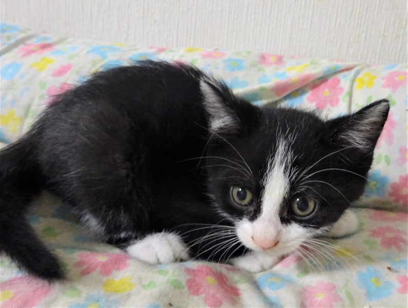 | 特徴(性格など) | 仮名: 健太くん(オス) 毛色: 黒白、顔は白い線が真っすぐ通っています、尻尾長い 性格: 少しビビリながら人は大丈夫で、威嚇なく抱っこ出来ます。 カメラや大きな音が嫌いなので、大勢の人も怖がると思います。 他の猫とはうまく付き合え、兄弟の京太くんとはにゃんプロしたりして遊んでいます。仲良しですから、2匹一緒のお家にお迎えくださるお家を希望します。暫くは見守りが必要なので、留守番時間の短いお家でお願いします。 ノミ取り済 検便済 駆虫済 3種混合ワクチン済 猫エイズ・白血病ウィルス検査はともに陰性です |