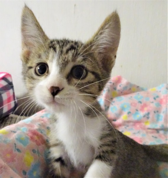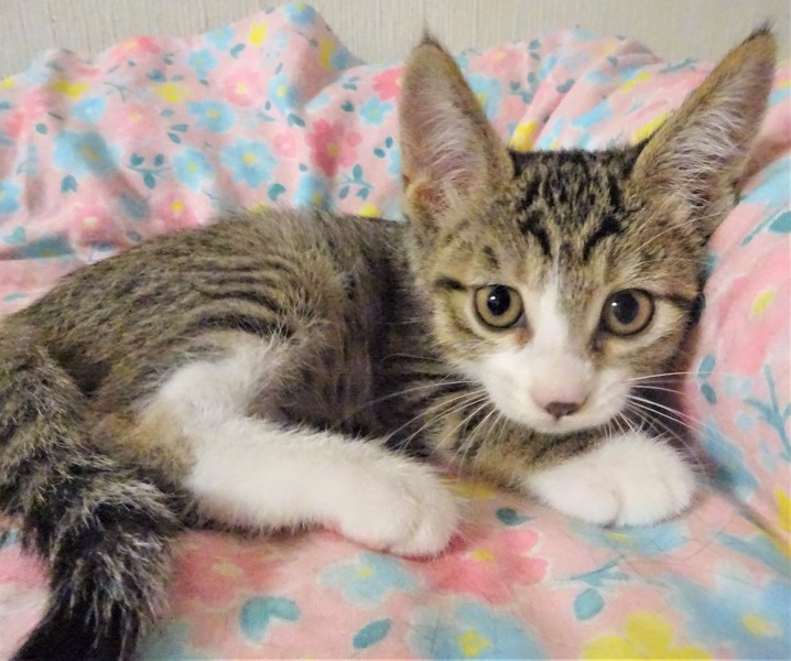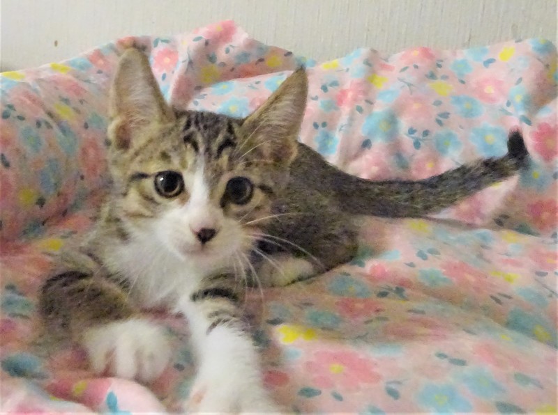 | 特徴(性格など) | 仮名: 京太くん(メス) 毛色: キジ白、耳が大きい、尻尾長い 性格: 人には馴れていますので威嚇もありません。少しビビリですが、猫じゃらしで遊べるようになりました。 大勢の人は苦手かもしれません。兄弟の健太くんとは仲良しで遊び相手なので、2匹一緒にお迎えくださるお家を希望します。 しばらくは見守りが必要なので、留守番時間の短いお家でお願いします。 ノミ取り済 検便済 駆虫済 3種混合ワクチン済 猫エイズ・白血病ウィルス検査はともに陰性 |