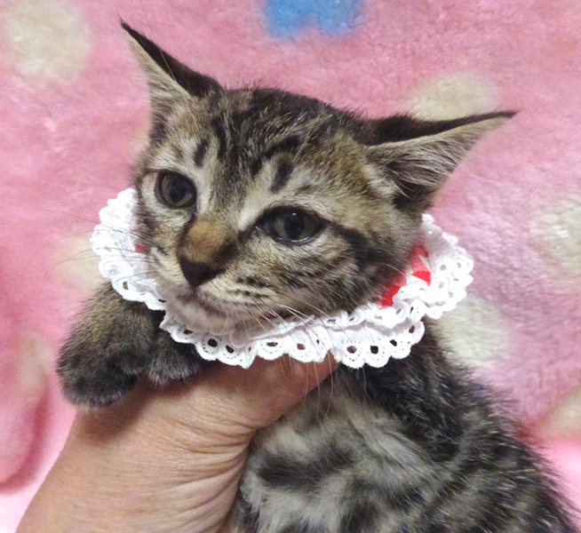 | 特徴(性格など) | 【猫の仮名】ベルちゃん (担当 松嶋) 【毛色・柄】キジトラ、長いシッポ 穏やかな性格で、猫を飼うのが初めての方でも大丈夫です♪ 走っても大丈夫なペット可のお住まいで、家族の一員として生涯大切にして下さるご家族を募集しています。 猫だけのお留守番が長時間でないご家族を希望します。 保護主の希望により、お一人暮らし、同棲中の方、ご高齢の方には譲渡できません。 |