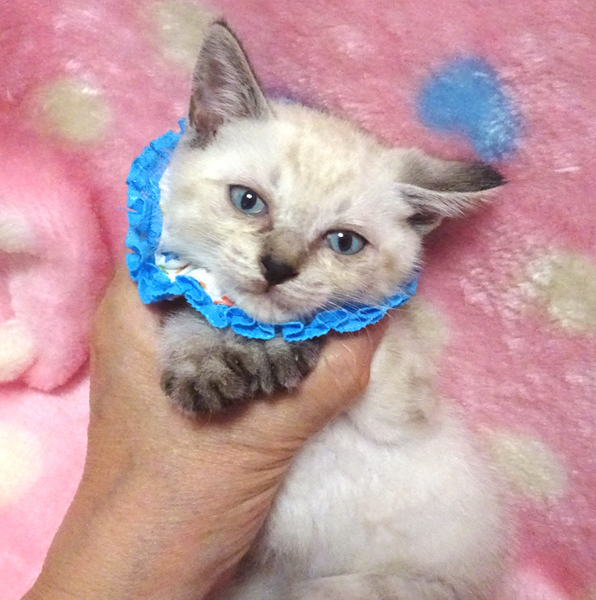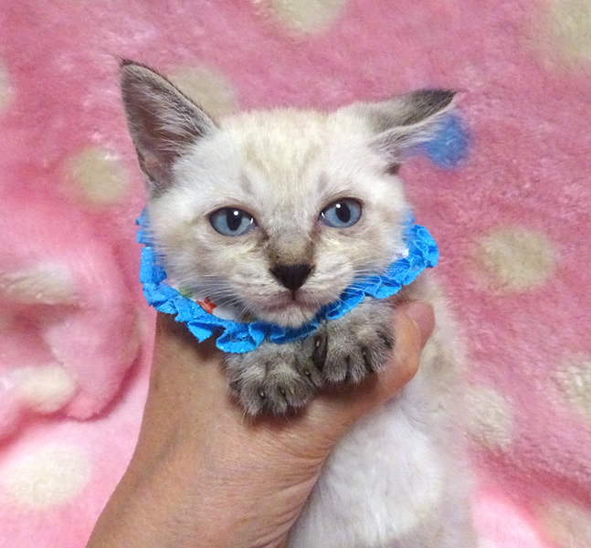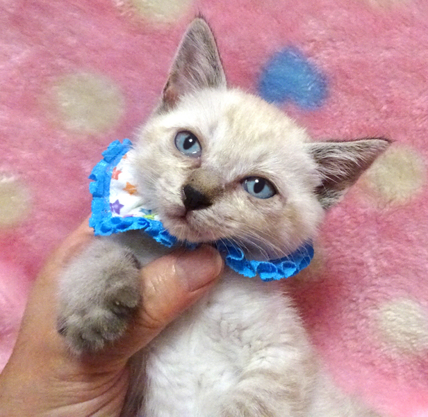 | 特徴(性格など) | 【猫の仮名】ソラくん (担当 松嶋) 【毛色・柄】シャム系、青い目、短いかぎシッポ 穏やかな性格で、猫を飼うのが初めての方でも大丈夫です♪ 走っても大丈夫なペット可のお住まいで、家族の一員として生涯大切にして下さるご家族を募集しています。 猫だけのお留守番が長時間でないご家族を希望します。 保護主の希望により、お一人暮らし、同棲中の方、ご高齢の方には譲渡できません。 |