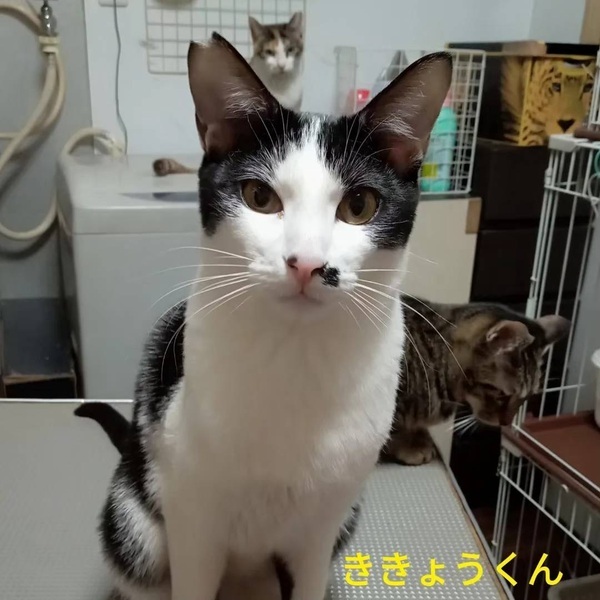 | 特徴(性格など) | 仮名「ききょうくん」ワクチン済み、駆虫済み、ウイルス検査白血病、エイズ共に陰性 黒白の男の子 ききょうくんは4兄妹の中で一番大きい子です。 すでにオス猫特有の甘えん坊ぶりが発揮されています。 遊んでもらうのが大好きです。 生後間もなくからミルクボランティアに育ててもらったので人間大好きな可愛い男の子です。 初めて猫を飼う方、小学生以上でしたらお子さんのいるご家庭でも問題ありません。 |