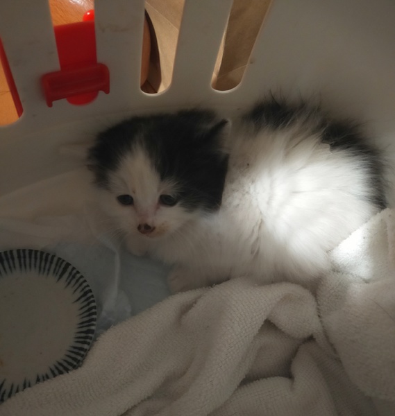 | 特徴(性格など) | おそらくキジシロ オスメス不明 困り顔 毛が長めな感じがします。 保護したばかりなので 人馴れしてませんが、 ごはんもふやかしたフードをモリモリ食べます。 |