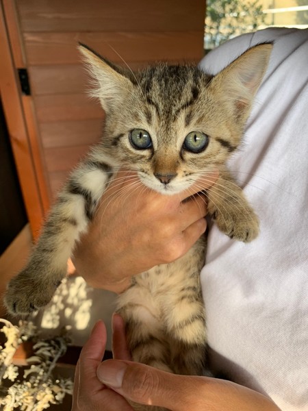| 里親募集する理由 | 自宅前に姉妹で鳴いていて、その内に自宅ウッドデッキの下に住みついてしまいました、自宅に2匹の猫がいるのでこれ以上は飼えません、可愛い甘え上手な子猫の里親になって下さい。 | ||