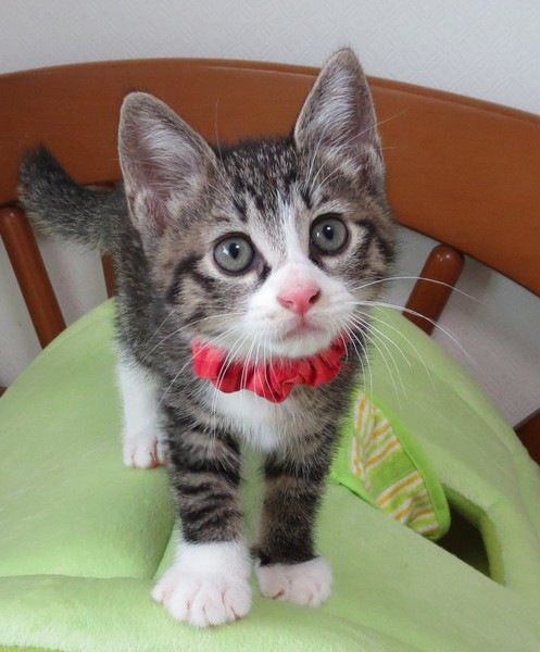 | 里親募集する理由 | アパートに住むお兄さんに可愛がられている猫のお腹が大きいので、避妊手術をお願いに行ったのですが、まさにその晩に出産してしまいました。そのまま室内で保護してもらい、子猫の里親探しとお母さんの避妊手術をすることにいたしました。 | ||