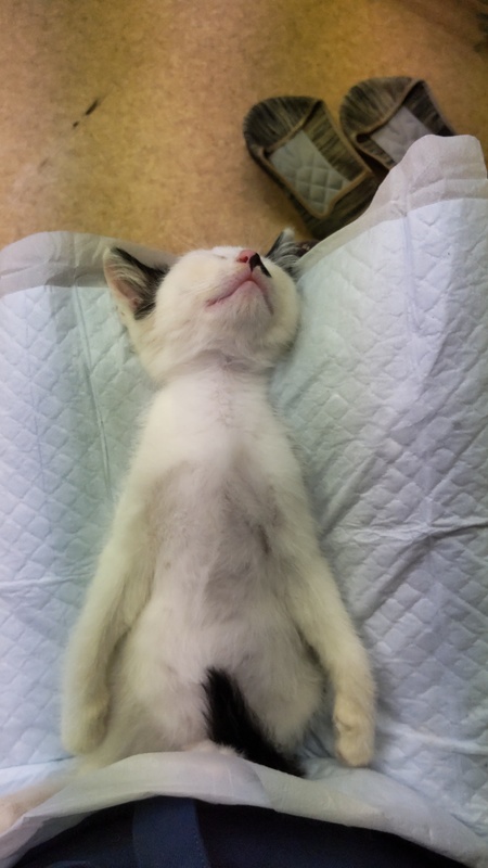 | 特徴(性格など) | 白地に黒の模様が入ってます とても フレンドリーで 保護時からリラックス 人馴れしてる子で なかなか活発です |