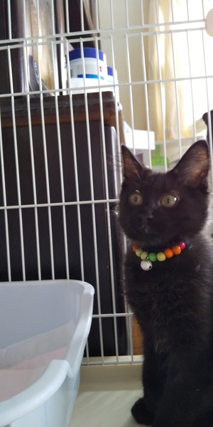 | 特徴(性格など) | 名前、鈴之助 年齢、推定3ヶ月 体重、1500g ワクチン、ノミダニ、駆虫済み。 検査、済み(-)。 頭手足黒、体がグレーですが、黒になる可能性あり。 長毛。 人見知りですが、活発です。 |