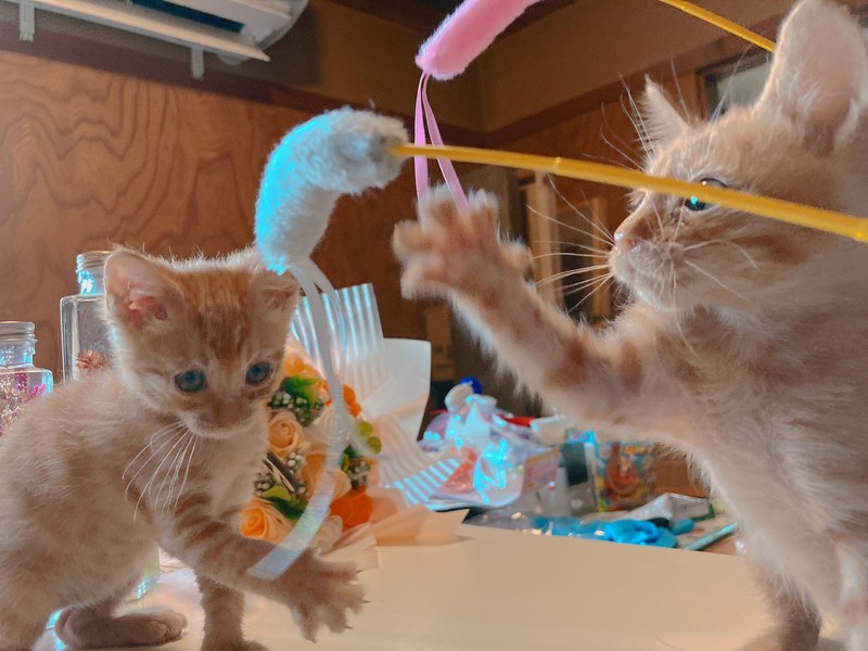 | 特徴(性格など) | 2021年4月3日施設生まれのチャトラコニャン(推定オス)です。 根っからの根明ちゃんの様で興味がある事にグイグイ遊びに飛びかかります^_^ 兄妹が多く生存争いに負け気味で一時危ない状態になり、こちらのチャトラちゃん(2匹)だけは途中人口保育です。 人口に切り替える迄の成長過程が悪かったので他の大きさが他の兄妹の2/3程度で獣医さんも「生後1ヶ月半?」と聞いちゃうくらい小ぶりちゃんです。 が、小柄なだけで離乳も終わりカリカリもしっかり食べれていて小柄なだけで大きさ以外の成長はちゃんと生後2ヶ月半の子です。 お腹の具合も絶好調です! 人口保育なのでとても人に懐いています。 近況報告しっかりと出来る方にお渡し致します。 ご年配の方、ご家族様のサポートをお伺いしてからの検討となります。 男性の方、神崎郡市川町にて要面談の後、お返事させて頂きます。(男性の方というだけではお断りは致しませんが、子猫の為、特に審査基準のハードルは上げさせて頂きます。ご了承願います。) エイズ偽陽性とは、お母さん猫の反応を受け継いでいて陰転する可能性が高い時期の子のエイズ反応となります。(エイズは猫同士移りにくく、発症もしにくくノーキャリアの子と同じ様に生活できる子が殆どなので、キャリア名だけで判断せず調べて頂けると幸いです) エイズに偏見のない方、またはエイズの子を飼っていらっしゃる里親様、ご検討宜しくお願い致します。 おもちゃ類に興味いっぱいのキラキラした動画も是非ご覧下さい♪ 健康状態 ・エイズ偽陽性 ・3種ワクチン済み ・体内外害虫駆除済み |