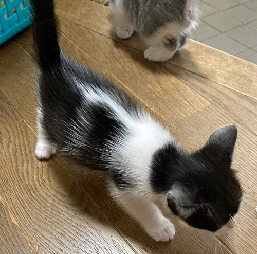| 特徴(性格など) | ★現在、黒白のAの子を募集中です。 グレー×白、キジトラ(オス)、三毛(メス)、黒白B(オス)トライアル決定 どの子も元気でかわいいです。黒白A(目まで黒がかぶってる子)、キジトラ(オス)、三毛(メス) 黒白B(違う母猫、頭が黒)は、少し憶病。 |