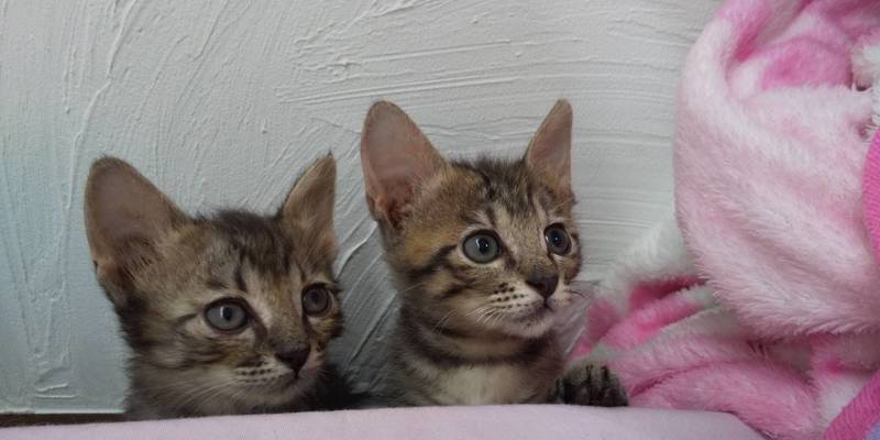 | 特徴(性格など) | キジのオスとメスの兄妹です。とても仲がよくいつも一緒に遊んでいます。 人工哺乳で育ったため人が大好きでいつもついてまわります。夜は枕元でいつも寝ます。 |