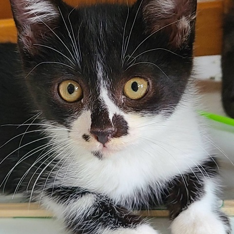 | 特徴(性格など) | ありすと姉弟です。ユニークな黒白柄、あんよの白ソックスとホッペの黒い模様がチャーミング。 すっかり人にも馴れて可愛いお顔や仕草を見せてくれます。撫でられるのが大好きですぐにヘソ天して甘えてくれます。 元気一杯で、よく食べよく遊びます。 意外にすばしっこいので脱走防止は常に心がけていてくださいね。 終生愛情を注いでいただける優しいご家族様に迎えていただきたいです。 |