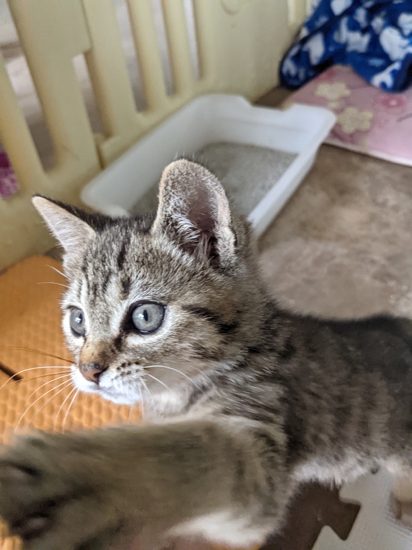 | 里親募集する理由 | 6月5日友人が勤めているお店の裏の所でお店の人が保護しました。 誰も保護、飼えない様子でしたので私が保護し里親募集しています。 保護時、栄養状態もよく、身体も綺麗でしたので脱走か捨てられたのかと思われます。 余程怖い思いかお腹が空いていたみたいで、シャーシャー、うーうーして大変でした。今ではすっかり甘えん坊のお転婆さんになりました(^^)とても可愛いです! 家では子供もまだ手がかかる年齢で猫も既に3匹います。 どなたか責任感のある誠実な優しい飼い主さん募集中です。 |