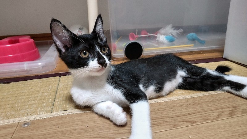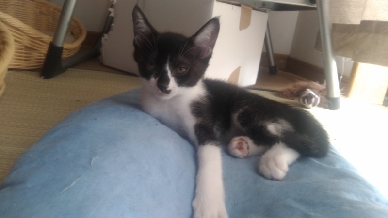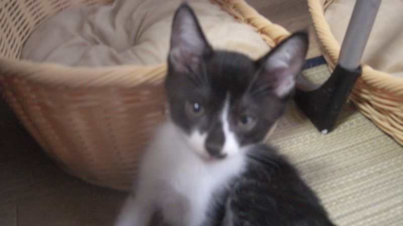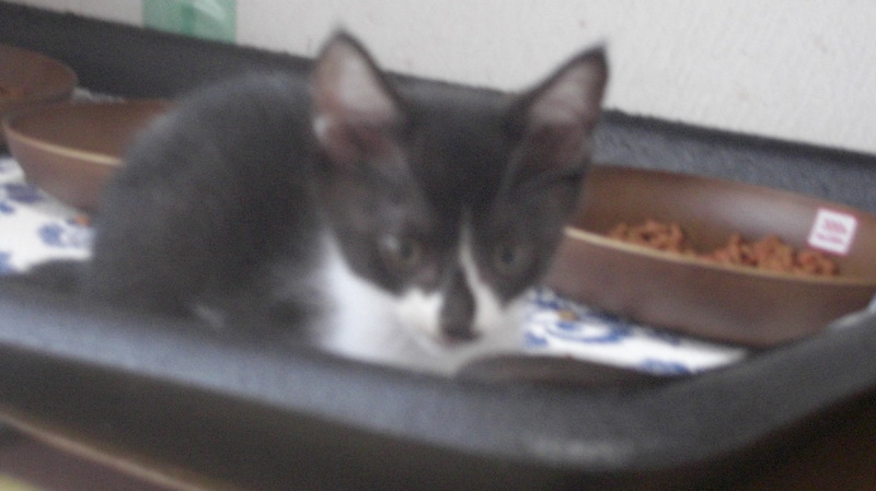 | 特徴(性格など) | ハチワレの子猫です。 抱っこしても飛び降りて兄弟のところに行き じゃれあうのが大好きのようです。 |