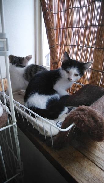 | 特徴(性格など) | 実家の駐車場で野良ニャンコが産んでました。 白黒、キジ白(グレー)。 ご飯もたくさん食べ元気いっぱいです。 他の大人ニャンコにも甘え上手。 |