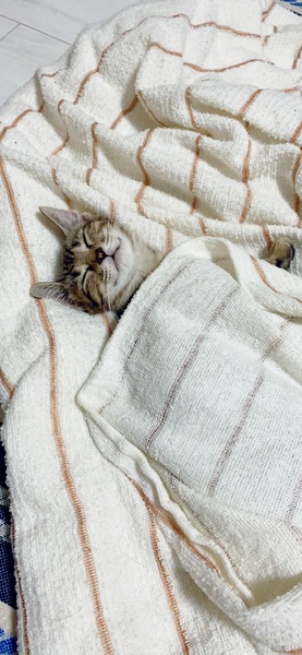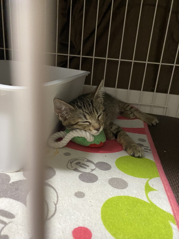| 特徴(性格など) | 白血病、猫エイズ共に陰性。 ワクチン接種済(1回、3種) 駆虫済です。 少し色の薄いキジさんです。 子猫らしく遊ぶのが大好きな女の子です。 疲れたらお気に入りのフカフカ毛布で即寝します(笑) 目が合うだけでゴロゴロが止まらない甘えたなところもとってもかわいい! |