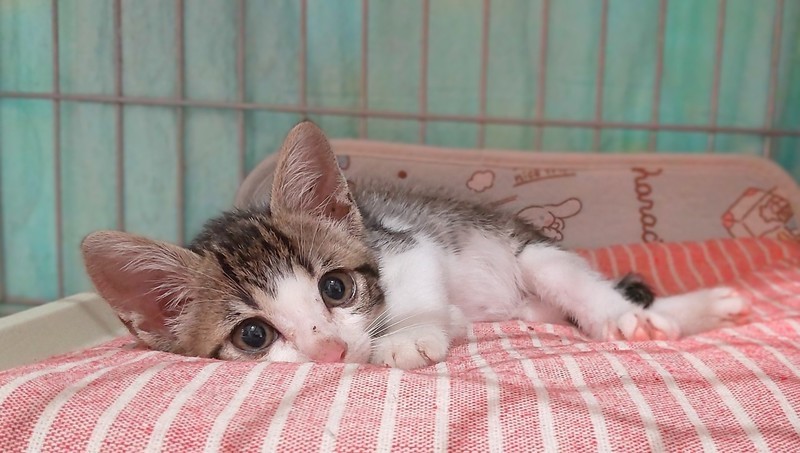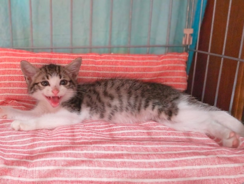 | 特徴(性格など) | 保護したての時は怖がってシャーシャー言っていましたが、すぐに慣れて、今はにゃーにゃーと甘えてきます。すでに人懐っこくて甘えん坊さんです^^ 画像からも抜群のかわいさが伝わると思いますが、めちゃくちゃかわいいです! にこくんを迎えてくださる方、よろしくお願いします! |